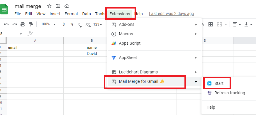 **2- After successful installation, Merge for Gmail is not visible in Google Sheets:**